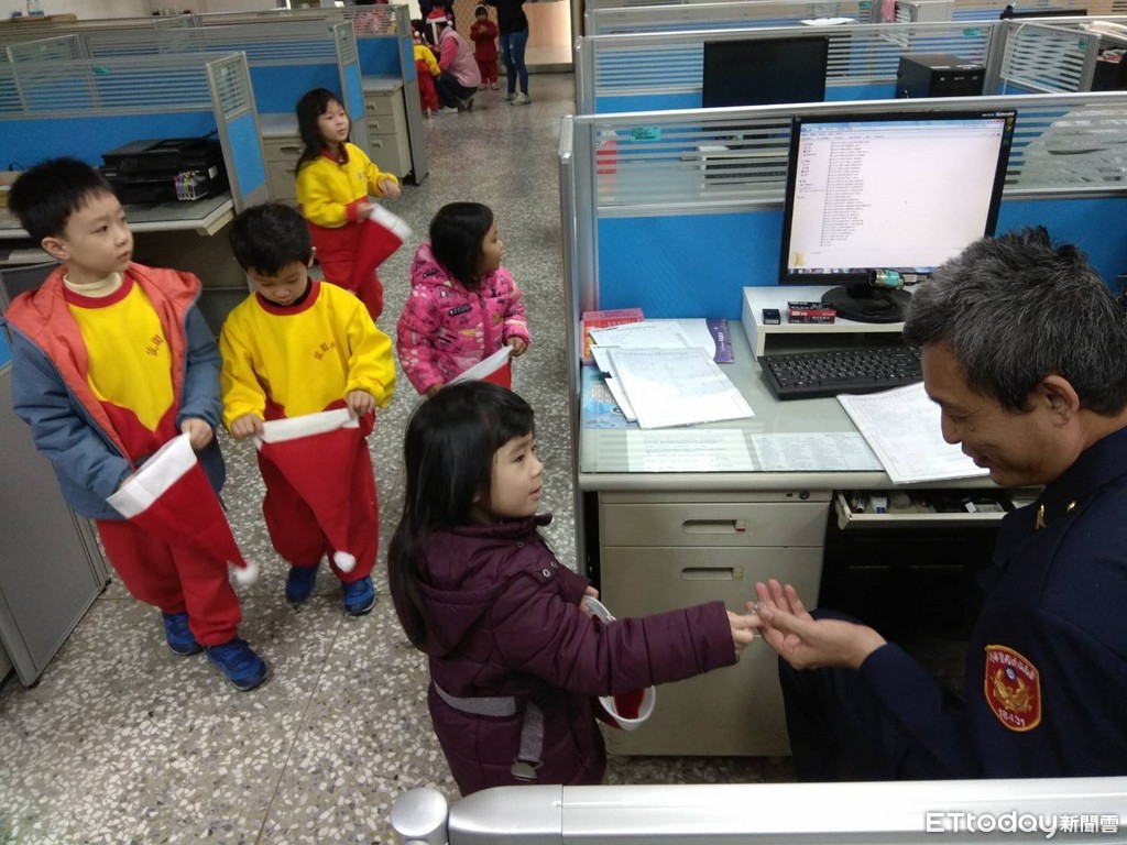 年關將近,警察叔叔、阿姨勤業務繁重,24小時無時無刻的維護治安守護,小朋友慰勞警察們的辛苦,特別選在聖誕節當天,到分局來發送糖果慰問在場的每一位警察叔叔、阿姨,令人備感窩心。