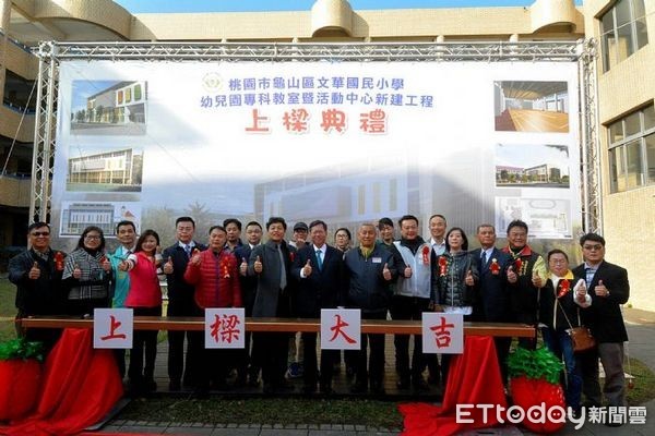 ▲桃園市龜山區文華國民小學「幼兒園專科教室暨活動中心新建工程」,舉行上樑典禮。(圖/桃園市政府提供)
