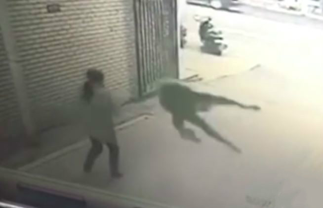 ▼畫面被監視器捕捉到,路人嚇得馬上退開。