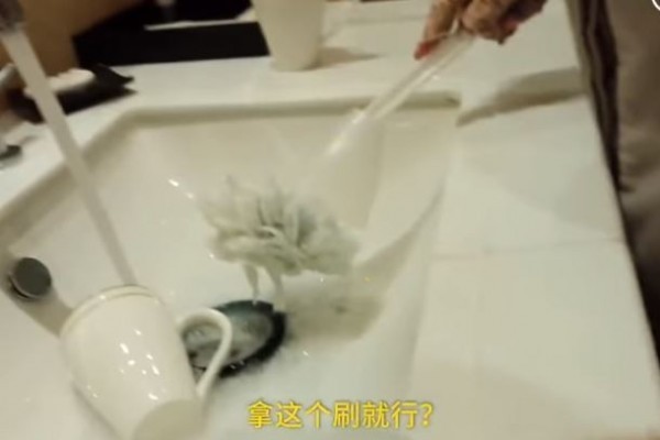 ▲一隻馬桶刷,又刷馬桶,又洗杯子。(圖/翻攝梨視頻,下同。)