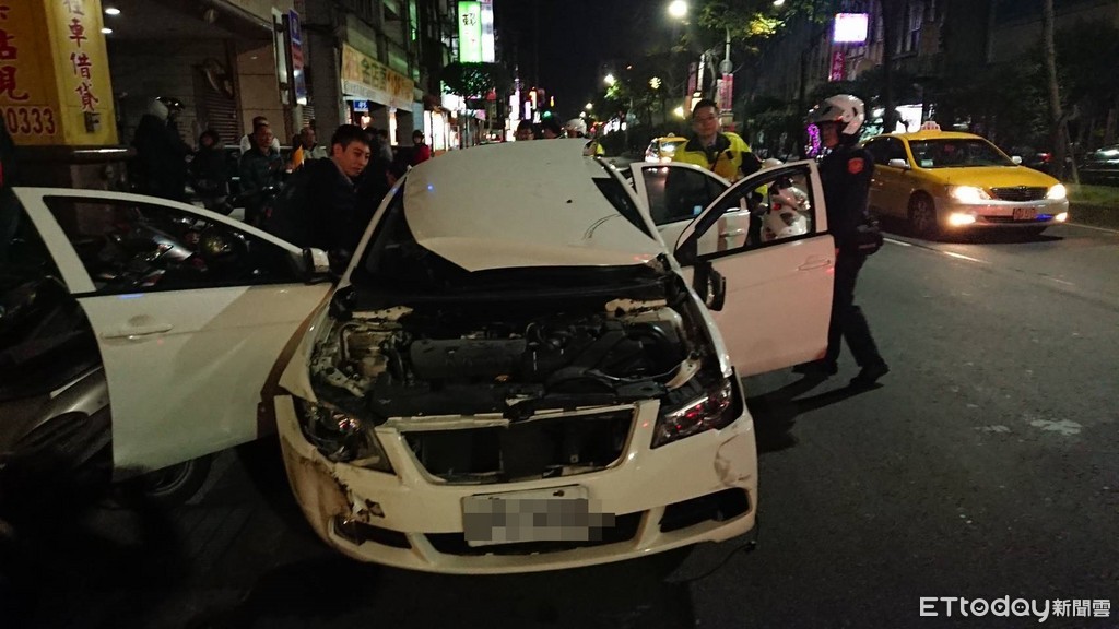 三重警方表示,厚德派出所巡邏員警昨日經過重陽路、大智街口時,發現一輛白色轎車形跡可疑,未料上前盤查時轎車竟直接衝撞巡邏車逃逸,造成車輛左後方嚴重毀損,員警立即通報攔截圍捕。半路因嫌犯轎車車頭破損,導致引擎蓋鬆脫掀起,阻礙到駕駛的行車視線,最後於重陽路、力行路口停靠就逮。
