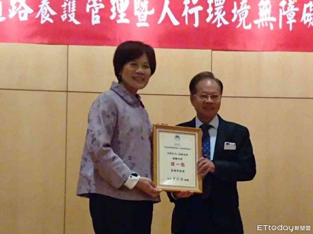 內政部27日在交通部運輸研究所辦理「106年度市區道路養護管理暨人行環境無障礙考評」頒獎典禮,台南市榮獲道路養護全國第一,以及綜合成績優等,台南市工務局蘇金安局長,前往接受頒獎表揚。