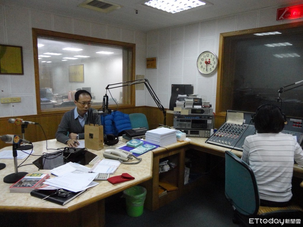 ▲台南市警局永康分局交通組組長張澤銘、警員王玉俞,親上廣播電臺,透過空中放送,講述永康交通事故防制及元旦連續假期交通疏導。(圖/警方提供)