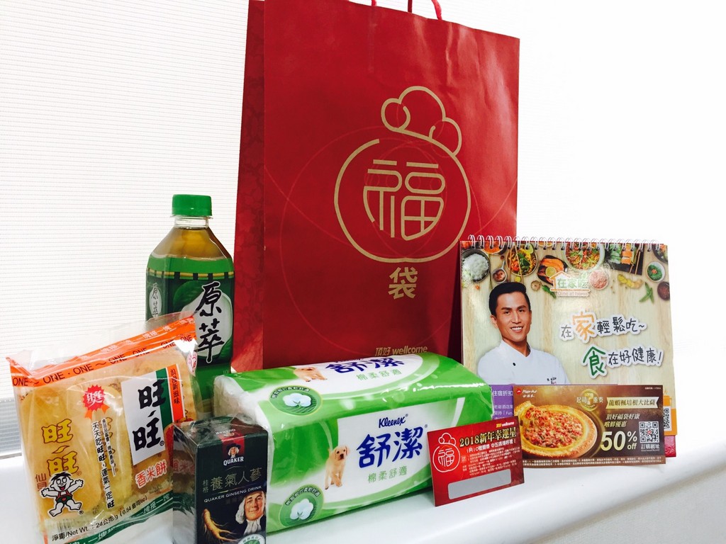 迎接2018年到來,有超市業者推出跨年限量「開運$99福袋」,裡頭除了有民生用品和總價值600元的買菜金外,還附有開運刮刮卡,有機會抽中Gogoro2和頂級老爺酒店住宿劵。