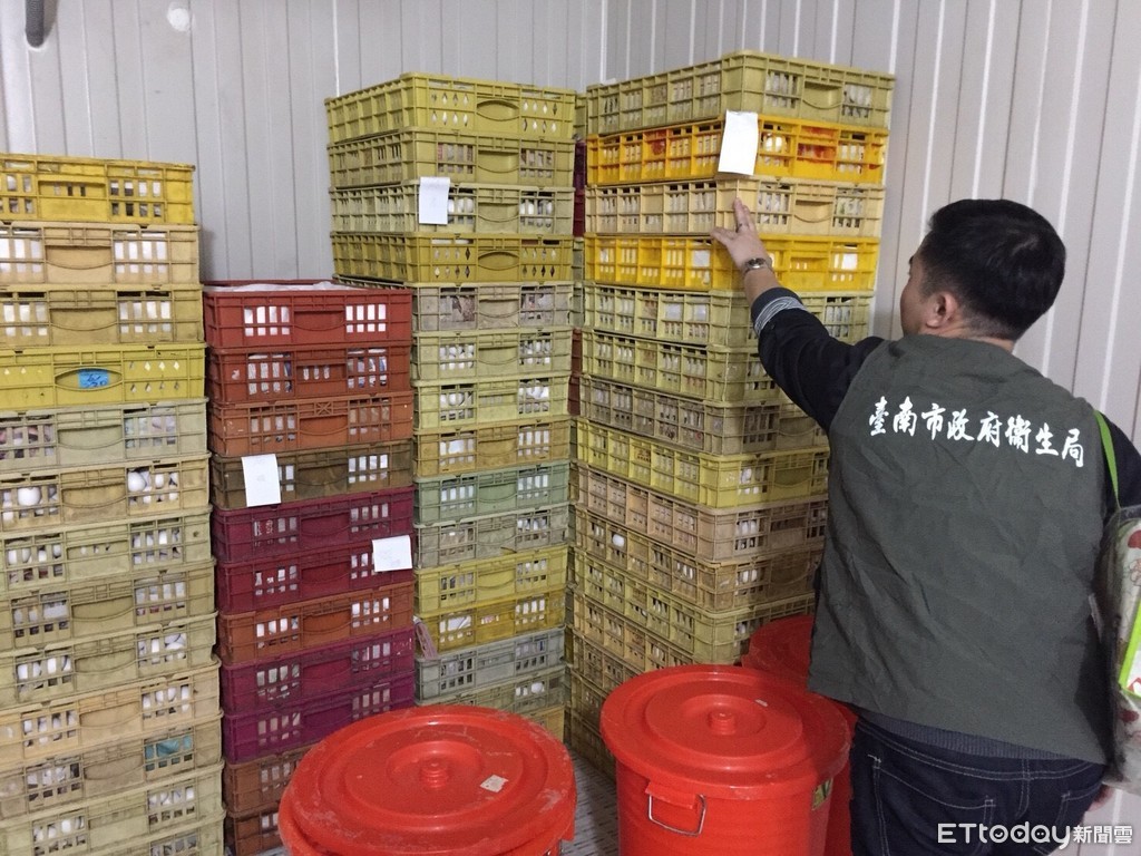 ▲台南市衛生局出動稽查人員,會同檢調至「泰頂山農產品有限公司」及「萇記泰安蛋品有限公司」位於仁德區的洗選廠稽查。(圖/記者林悅翻攝)