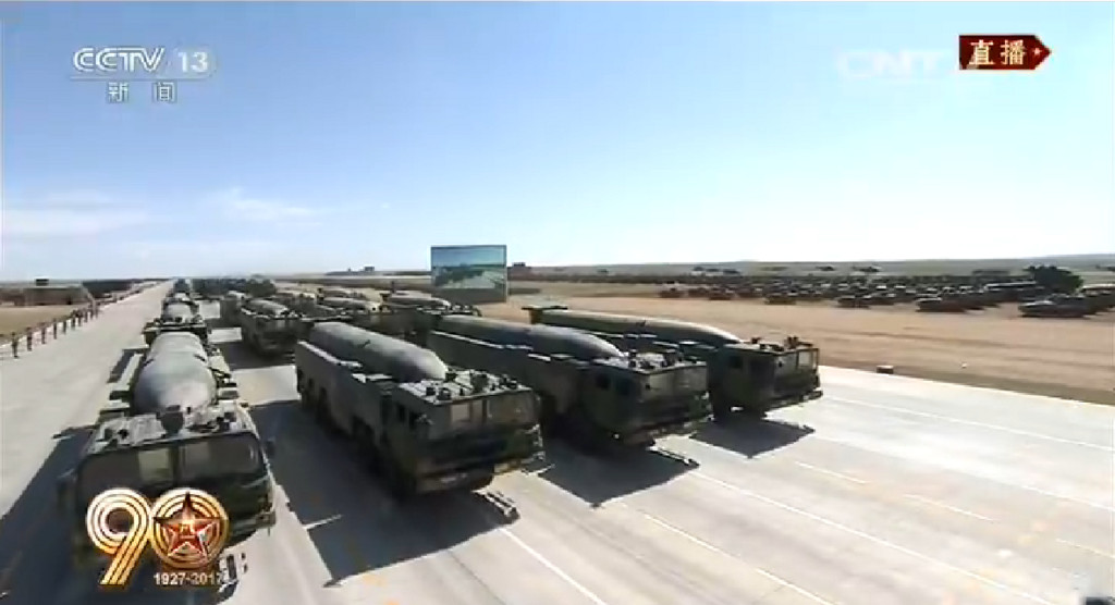 ▼解放軍建軍90周年閱兵典禮,東風-16近程彈道導彈亮相。(圖/翻攝自央視)