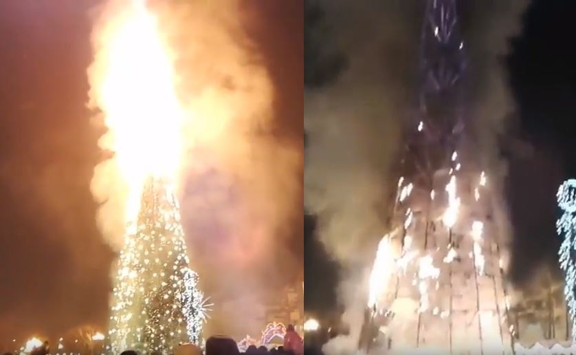 俄羅斯庫頁島南薩哈林斯克市(Yuzhno-Sakhalinsk)迎接2018年的跨年夜,數千名民眾聚集在25公尺高的聖誕樹旁,一同慶祝新年到來。但就在煙火表演開始後不久,這棵樹卻意外起火燃燒,短短幾分鐘就把它燒得只剩金屬框,幸好這起意外並未造成人員傷亡。
