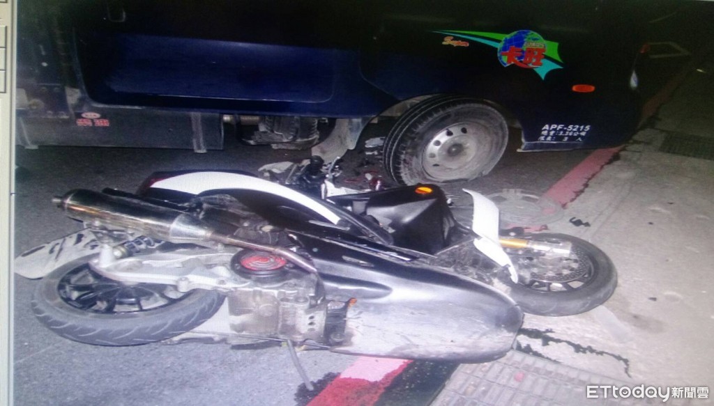 ▲機車騎士疑似未注意前方車況,高速撞上迴轉小貨車送醫不治。(圖/記者林煒傑翻攝)