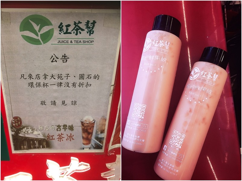 擴大限塑元旦正式上路,環保署全台稽查1萬800家店家,開出16張勸導單,飲料店最多。不過有網友發現,高雄一間連鎖手搖飲料店紅茶幫貼出公告:「來店拿大苑子、圓石的環保杯一率沒有折扣。」限塑首日就引發爭議,對此,台南總店澄清,應該是加盟店個別行為,將追查清並要求撤下!