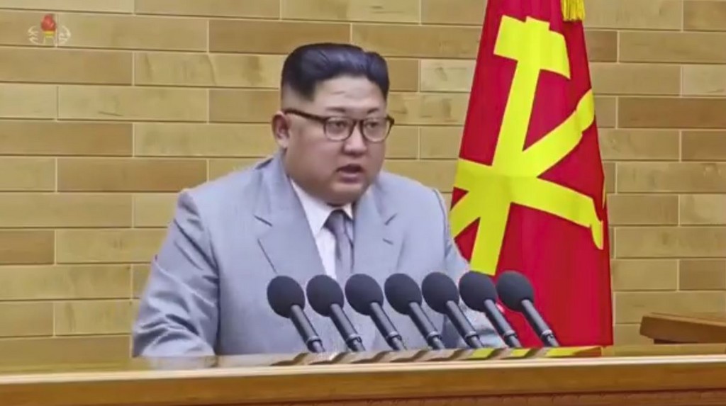 ▲金正恩在元旦演說上表示,啟動核武的按鈕「就在我桌上!」。(圖/朝鮮中央電視台,下同)