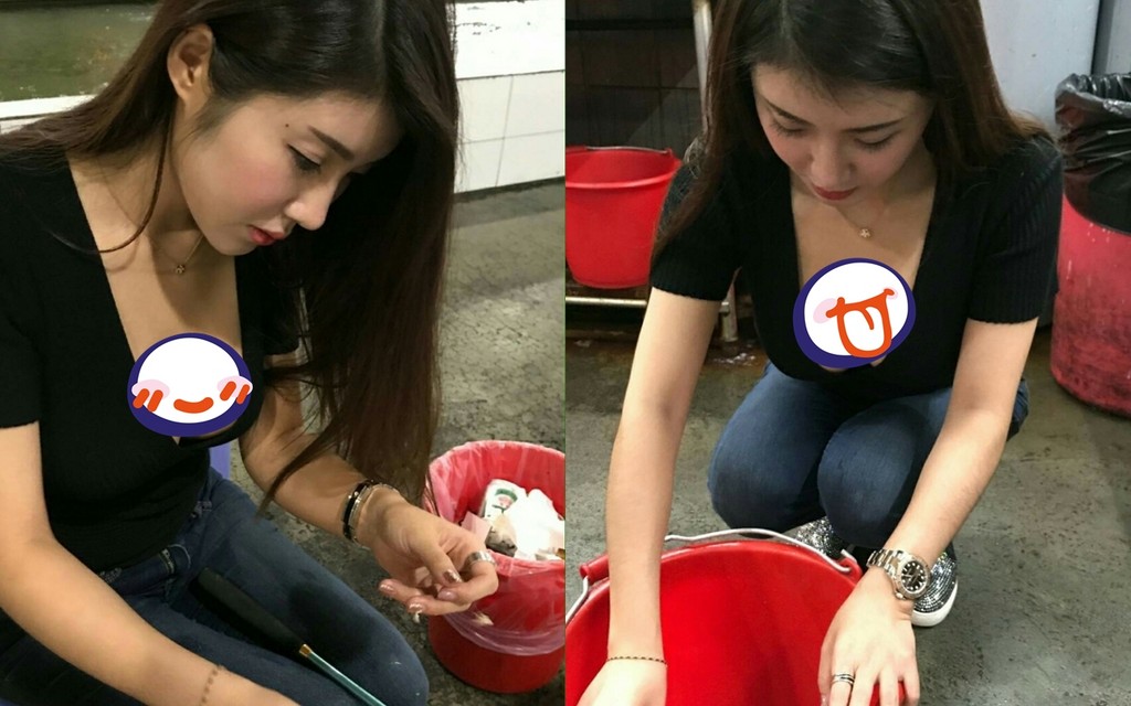 照片中地點位在桃園一間釣蝦場,這位長髮飄逸的爆乳辣妹正在認真低頭勾蝦餌,似乎沒有發現自己被朋友拍照,波濤洶湧的北半球也相當搶眼,而且下一張照片更加性感,只見她站起來後將手舉得高高的,原來是順利釣上了一隻蝦子,笑容顯得非常高興,網友也大讚這張照片拍得相當動感。