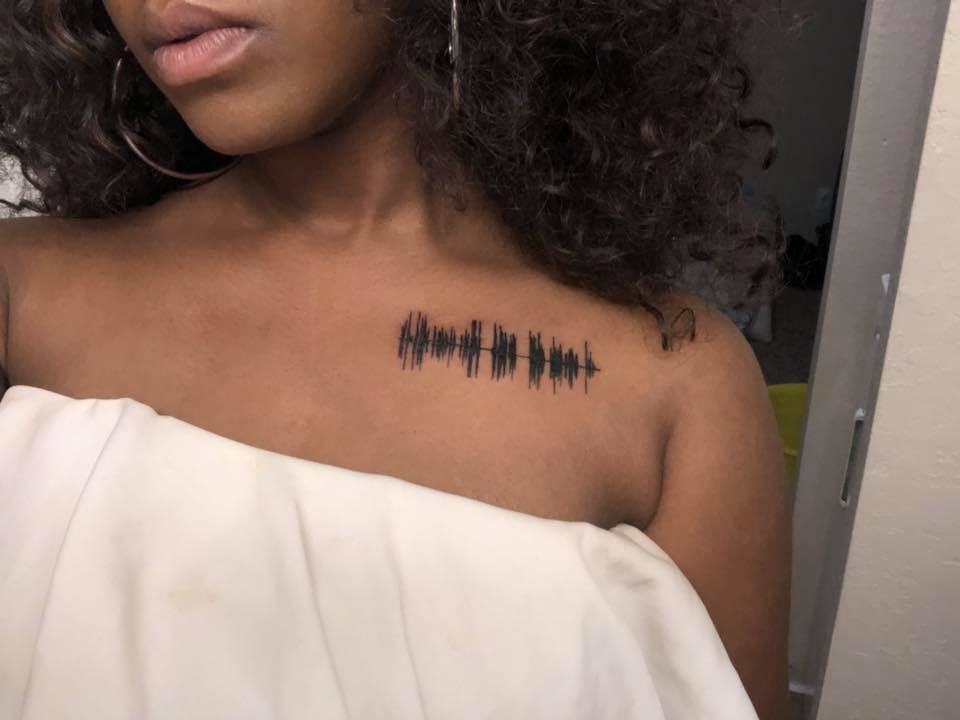 美國芝加哥女子莎拉(Sakyrah Morris)跟奶奶的感情非常好,日前她決定將奶奶三年前過世時留下的語音訊息特製成聲波刺青(Soundwave Tattoos)刺在胸口,隨時都可以用手機掃出讓她想念的聲音。