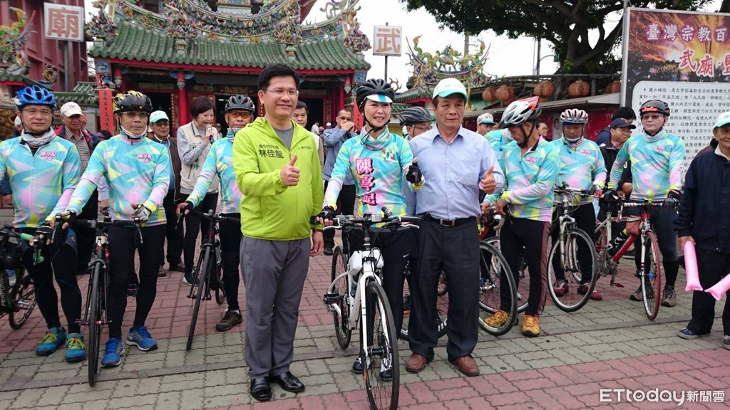 ▲台中市長林佳龍二度南下,支持師妹立委陳亭妃的幸福鐵馬行,提出「兄妹齊心,雙劍合併」,一起為中南部的發展來打拼。(圖/陳亭妃提供)