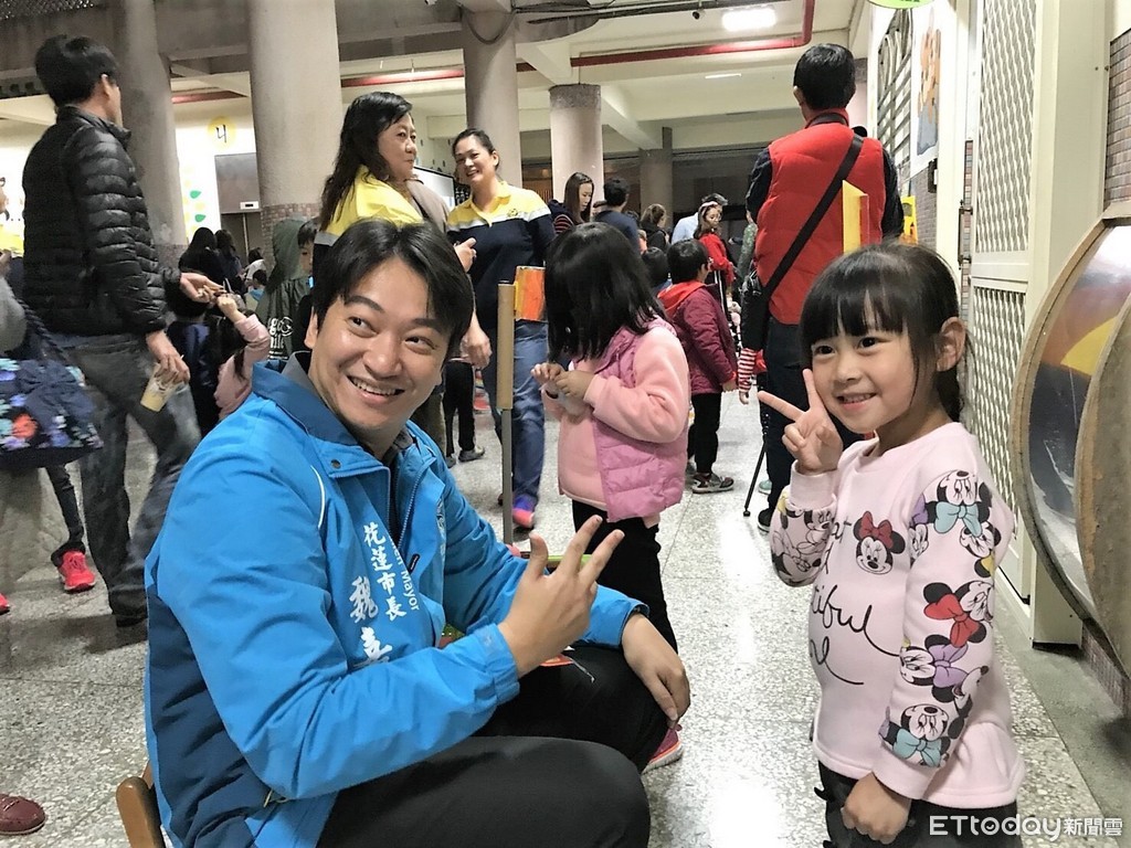4日下午將近放學時段,花蓮市立幼兒園化身為熱鬧夜市,家長及小朋友在穿堂聚集,為了即將登場的夜市活動,各個都抱著期待及雀躍的心情。有些小朋友由家長陪同,有些則是全家出動,包括爺爺奶奶等三代同堂都來參與小朋友的成果發表。
