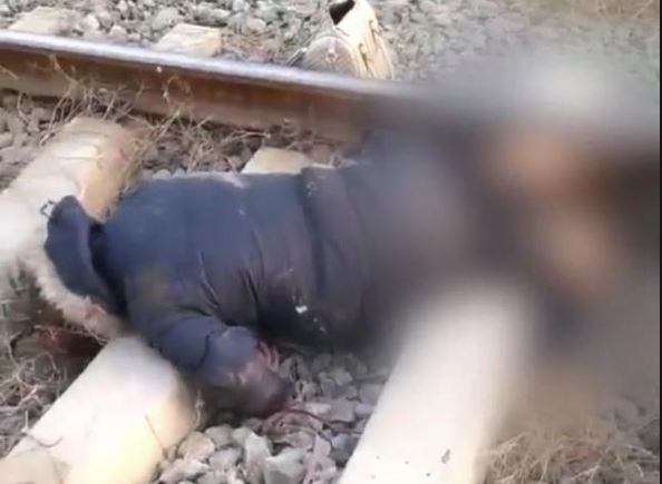 ▲女子被撞後仍活著,在鐵軌上掙扎。(圖/翻攝梨視頻,下同。)