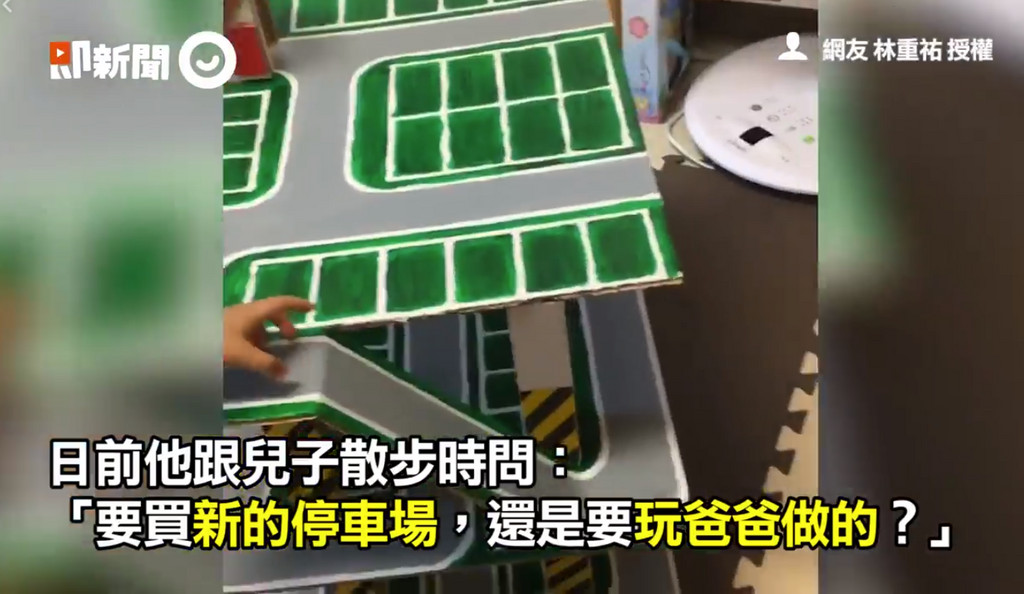 爸爸疼小孩無極限!網友「林重祐」在臉書上傳一則影片,內容是兒子說「想玩爸爸做的玩具」,所以他乾脆「手作」一座超完整的「停車場」給孩子,不僅做工超精細,還很貼心的附上製作方法,讓網友羨慕到直呼,「有一種好爸爸,叫做別人的爸爸!」