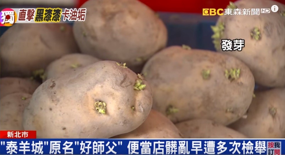 ▲好師父便當業者整箱的馬鈴薯「通通發芽」,甚至還長出綠色的小嫩葉。(圖/東森新聞)