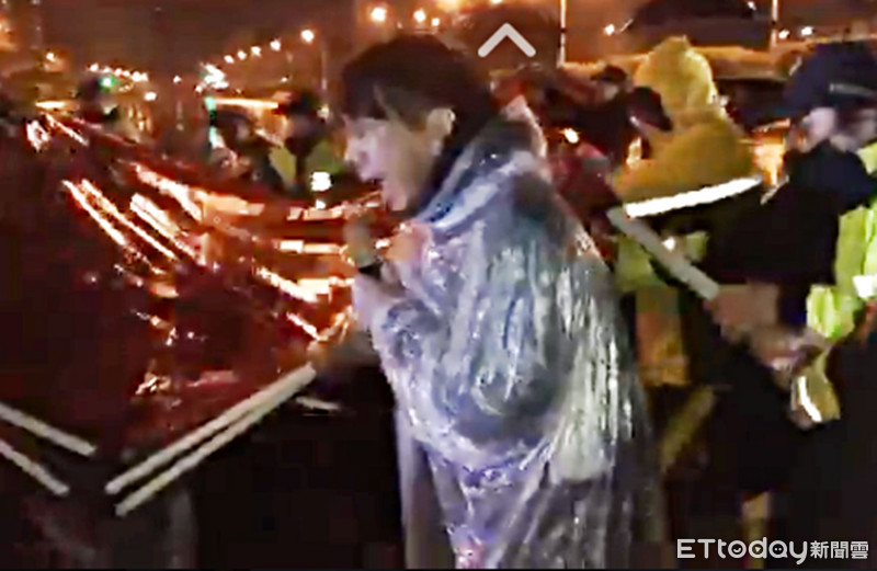 ▲府前帳篷遭警「夜襲強拆」慘淋雨!徐永明抓鐵架反抗。(圖/取自徐永明臉書)