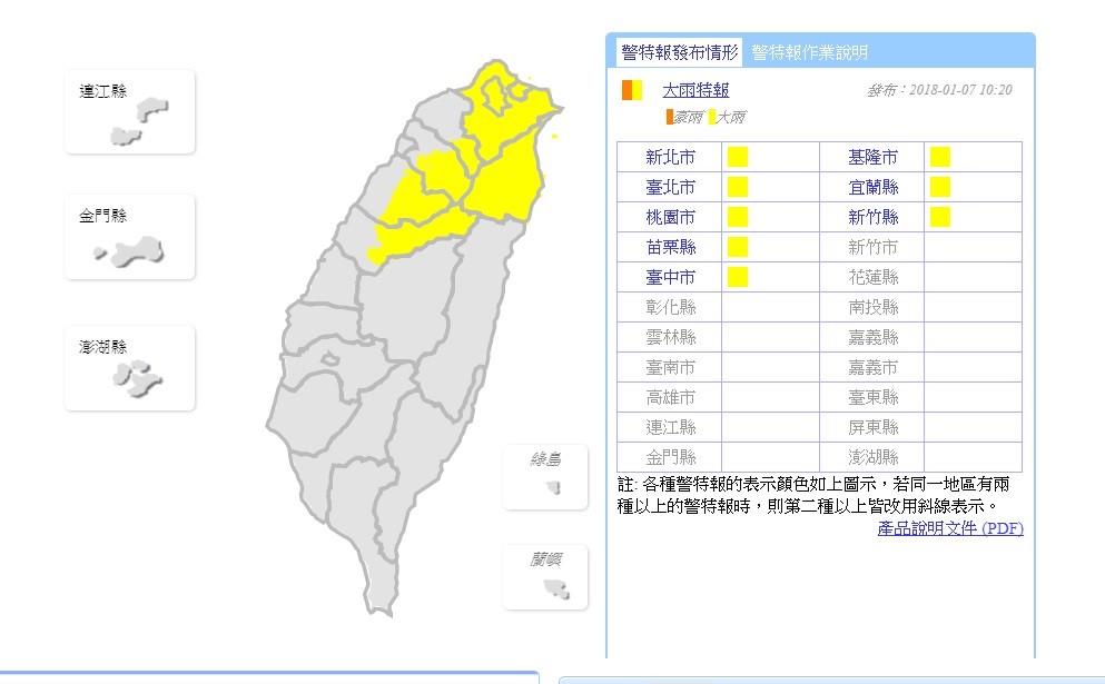 中央氣象局表示,今天鋒面接近,鋒面前緣的水氣移入台灣上空,全台都有機會降雨,中部以北、東北部地區及各地山區有陣雨情形,溫度方面,北台灣高溫約20度,中部及宜花東高溫約21至22度,一整天偏濕涼,南部高溫可以到25度,並針對北北基、宜蘭縣、桃園市、新竹縣、苗栗縣、台中市等發布大雨特報。