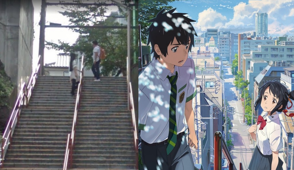 《你的名字》紅遍多個國家後,開始有許多影迷特地飛往日本「聖地巡禮」。由於《你的名字》動畫、海報或廣告中,都一定會出現須賀神社的階梯,導致此階梯跟著爆紅,粉絲們搶著來此地拍照留念。一名2CH論壇網友於4日表示,自己透過Google地圖查了一下傳說中的「聖地」,結果看到了這個尷尬畫面。