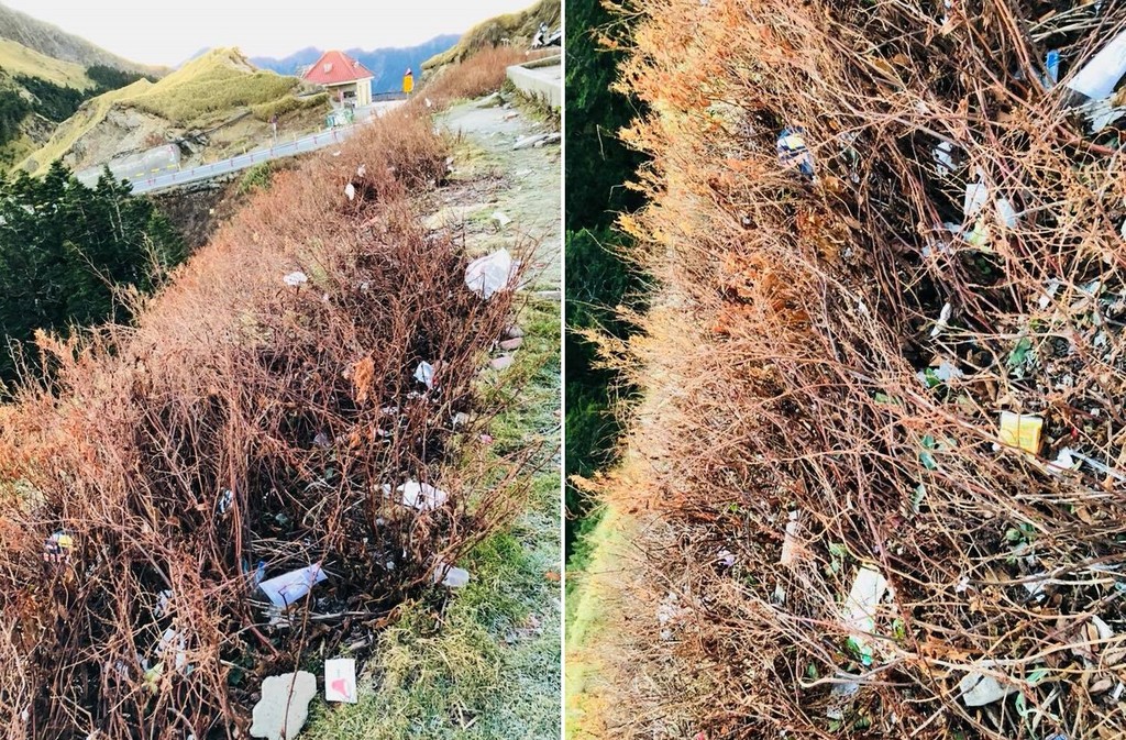 陳女提到,她與外國友人為了避開新年看日出的人潮,特地選在2日凌晨才前往武嶺,雖然大家如願看到令人讚嘆的美景,但也在停車場旁的陡坡植被上看到掛滿滿的垃圾,沿路也有許多一坨坨來路不明的衛生紙,加上之後寒流來襲有可能下雪,到時合歡山又會湧入不少人潮,因此才會決定把照片PO出來,希望能喚起大家的公德心,「大自然讓我們看見美麗的風景,也請隨手帶走自己的垃圾回饋大自然。」