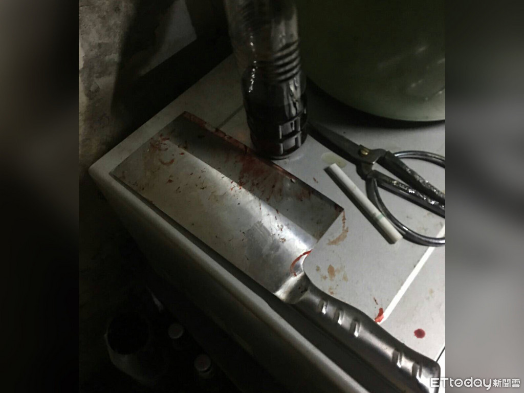 ▲員警在屋內找到傅姓女子用來砍殺李姓老翁的菜刀。(圖/記者楊佩琪翻攝)