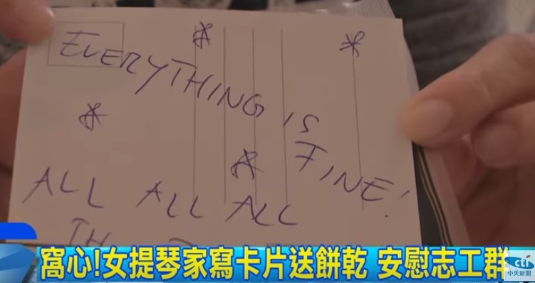 ▲雖然大腿遭燙傷,柏林交響樂團女小提琴手表現超暖心,還送小禮物安慰志工。(圖/翻攝中天新聞)