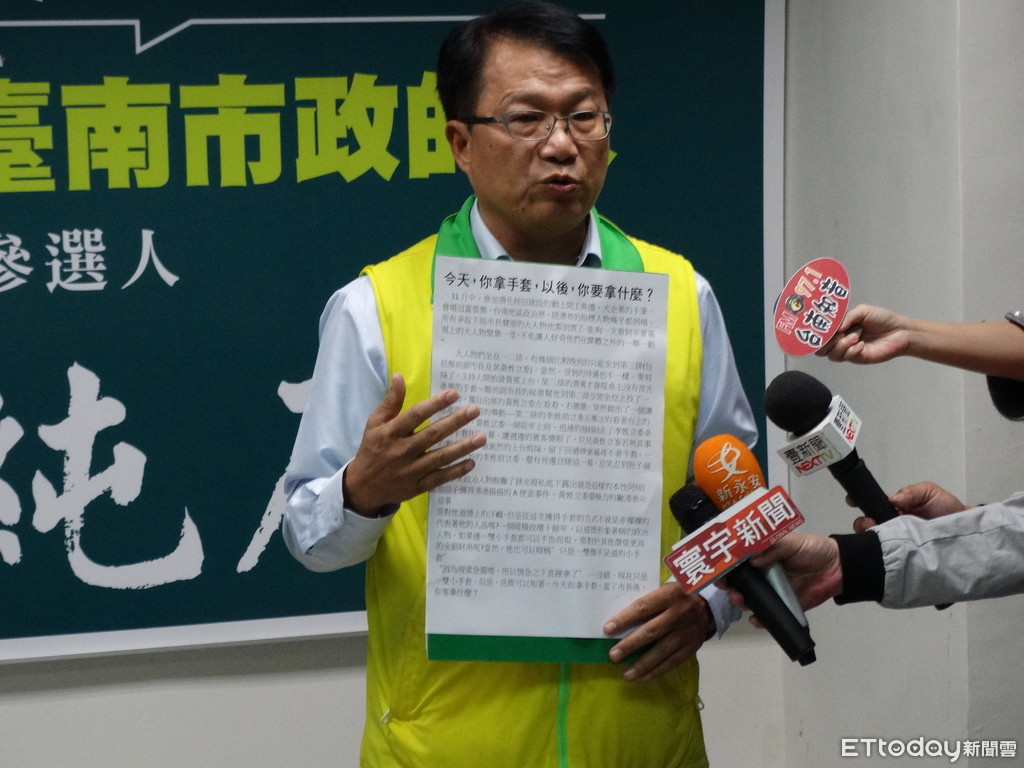 ▲台南市長參選人顏純左駁斥造謠抹黑說,認為政治人物應自我要求高道德標準。(圖/記者林悅翻攝)