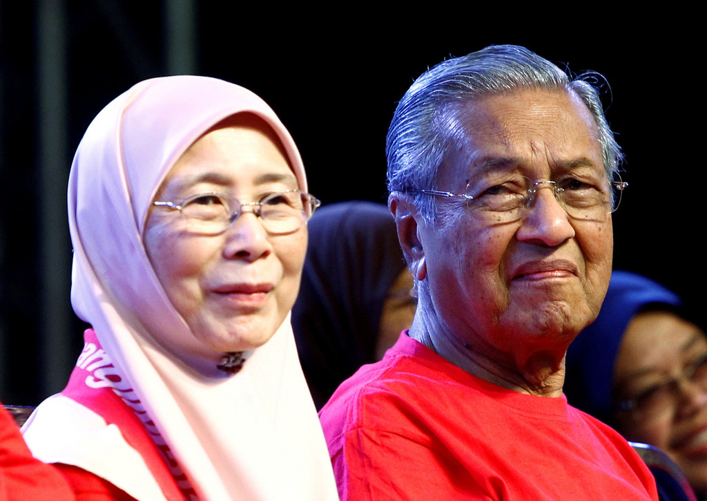 ▲馬來西亞反對派宣布,一旦在選舉中獲勝,92歲的馬哈迪及安華妻子旺阿茲沙將成為正副總理人選。(圖/路透社,下同)