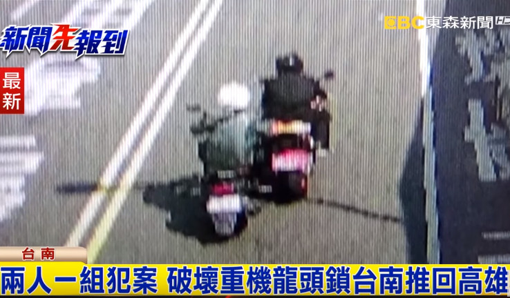 由於重機有晶片防盜,竊賊沒辦法發動,警方原本懷疑附近應該有同夥開貨車接應,不過警方接連接獲多起重機失竊案件,仔細過濾監視器後才發現,這組竊賊是以假裝機車故障的方式,1坐在贓車上,另1人也騎機車跟在其後,並用腳踢方式幫忙推行,儘管失竊的重機重量將近200公斤,竊賊仍這樣一路從台南推到高雄。