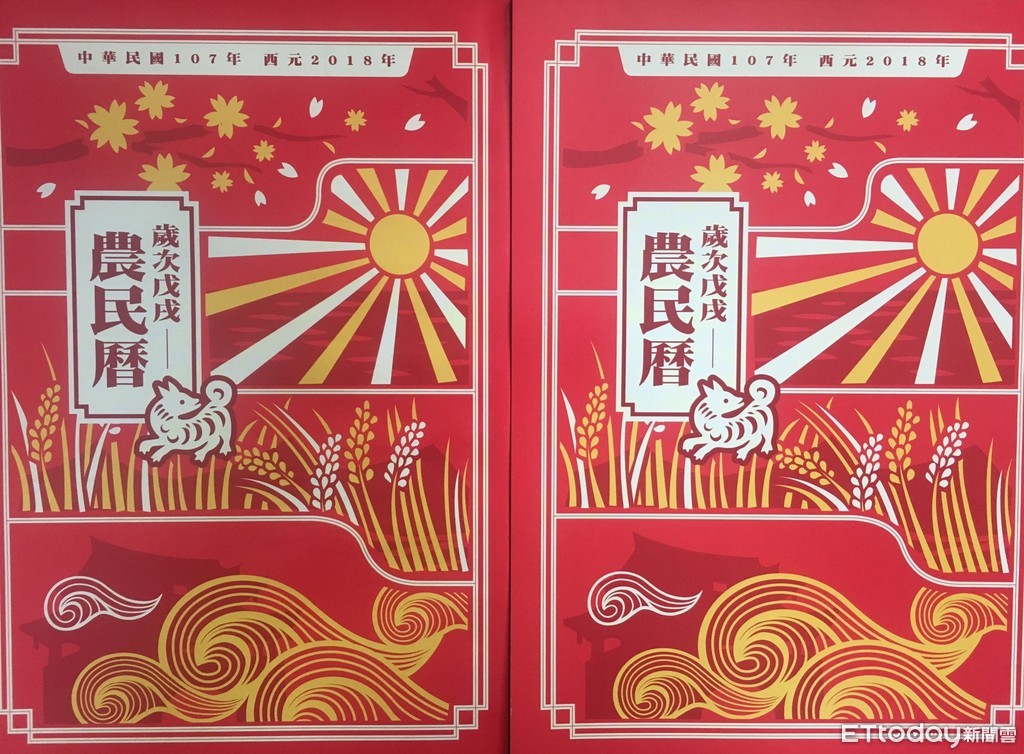 ▼國民黨議員抨擊,今年農民曆封面設計以日本軍國主義的旭日旗為圖案。(圖/網友提供)