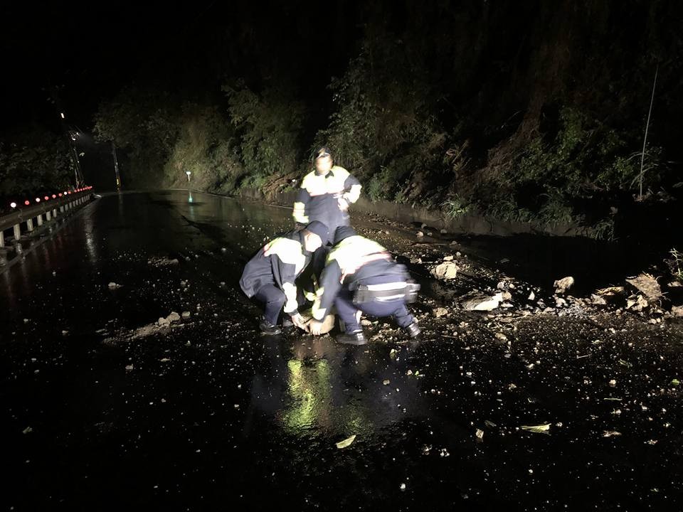 日前受到鋒面影響,全台各地幾乎都是溼答答的天氣。新竹縣彭姓網友今日(10日)凌晨在臉書「爆料公社」PO出4張照片表示,剛經過新竹縣道122號員東國中附近時,看到3名警察伯伯頂著8度低溫,主動徒手搬運路上的落石,讓人覺得相當窩心。