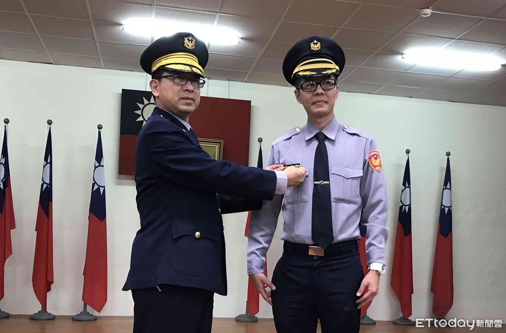 ▲台南市玉井分局長楊華中公開授階,讓新初任「警察官」之黃鈵閎備感尊崇。(圖/警方提供)