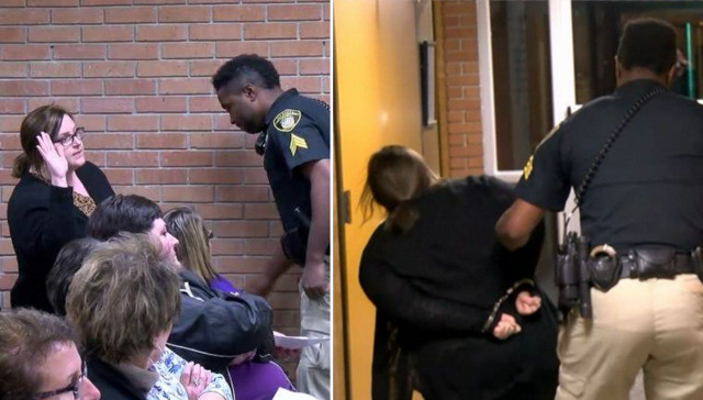 美國路易斯安那州一名女教師日前在學區董事會上質疑,基層教師已10年沒被加薪,憑甚麼學區督學能加薪3萬美元。傻眼的是,女教師話還沒說完,校警就衝了過來,直接將她壓倒在地,強行上銬抓走!事件已引起全美公憤,不少人都痛斥根本是「第三帝國」(納粹德國)的行徑。