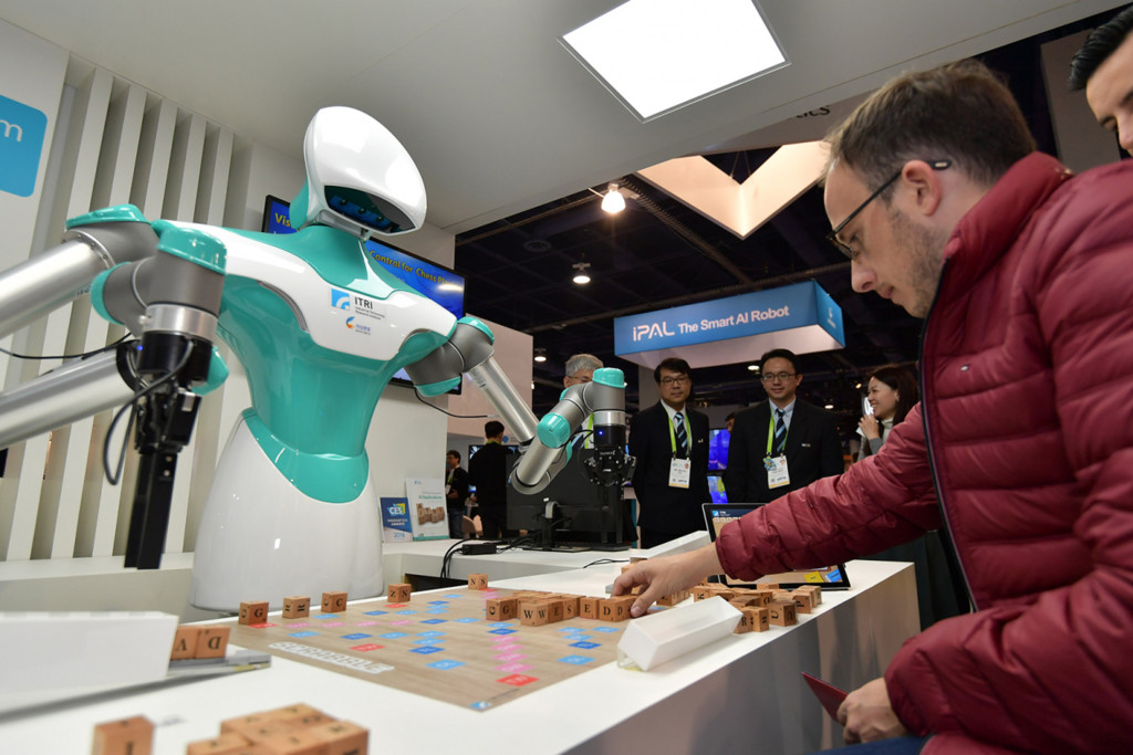 美國最大國際消費性電子展(CES),9日到12日在美國拉斯維加斯盛大舉行。工研院研發的智慧視覺系統機器人,在開展首日就吸引美英等國媒體報導與主辦單位盛讚,更成為CES創新獎得主。「智慧視覺系統機器人」使用了2D與3D影像融合技術下,能辨識平面文字與物體位置,搭配人工智慧與機器手臂後還能精準地進行拼字遊戲,甚至連北美拼字冠軍也想買一台回家。