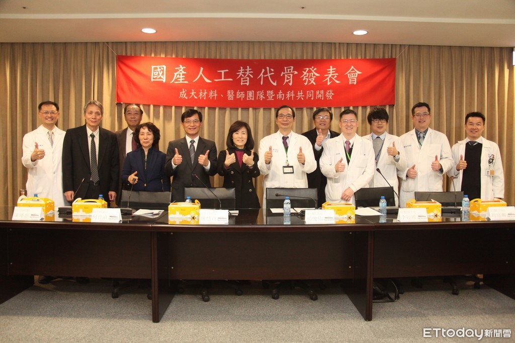 ▲成大校長蘇慧貞、成功大學、成大醫院相關研發團隊共同發表人工骨生醫材料成果發表。(圖/成醫提供)