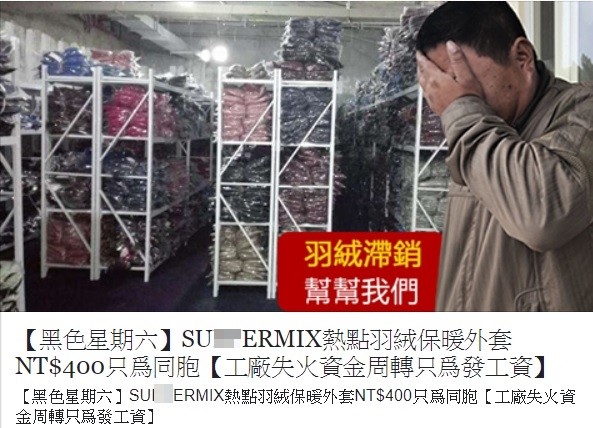 而員工也陪著上演溫暖戲碼,自發捐款、誓言與工廠同進退;在介紹欄的最後,業者還寫下「上天眷顧!所幸四號倉庫未點燃!」表示近日農曆年節將至,老闆受到大火影響資金周轉不靈,難以發放員工薪資,因此將現存3000多件羽絨外套賤賣,原價6000元、現在只要400就能買到,還強調「只為員工過好年!絕對全台低破盤價!」