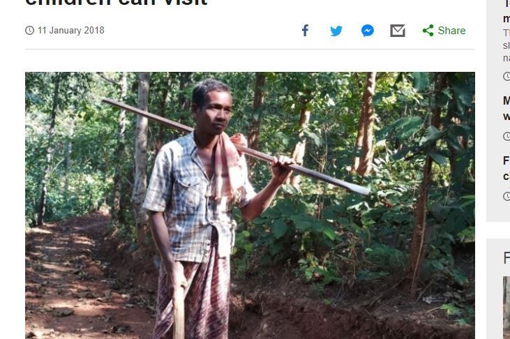 據《BBC》報導,45歲的納亞克(Jalandhar Nayak)的3個小孩目前都在寄宿學校就讀,此前他們要上學時,都得跋山涉水經過窄小且充滿岩石的道路。做為父親的他為了讓小孩能方便行走,變開始在2年前開始用鋤頭與十字鎬等工具開挖,從家裡到學校要15公里長的道路,每天花費8小時鋸開石頭並移走,目前已經完成清除8公里。