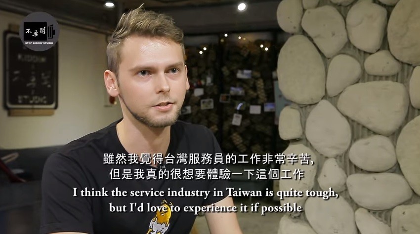 ▲斯洛伐克男生說,雖然台灣服務業很辛苦,但他很想體驗看看。(圖/翻攝「Stopkiddinstudio」YouTube/下同)