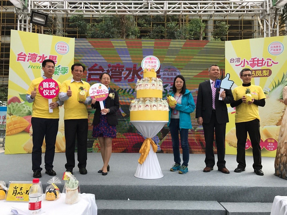 台灣農民新市場!屏東縣政府與台灣屏東農業國際運銷公司聯合,將「金鑽鳳梨」推廣至廈門及北京,分別辦理「台灣水果節開跑」的活動,並在大陸沃爾瑪超市系統近500家門店全面上架。屏東縣政府農業處副處長鄭永裕也表示,屏東的鳳梨生產佔全台的30%,產量最也是最高。
