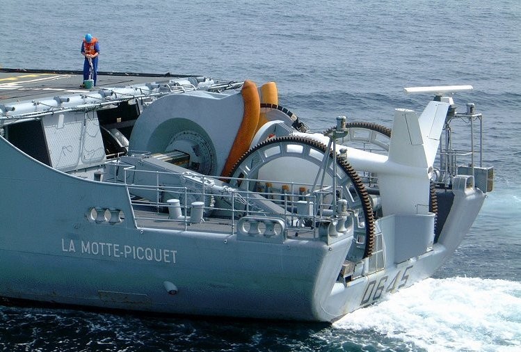 ▲法國F70級巡防艦「La Motte-Picquet」裝置在艦尾的DUBV43或DUBV43C可變深度聲納。(圖/維基百科)