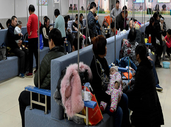 ▲鄭州市兒童醫院輸液大廳。(圖/新華社)