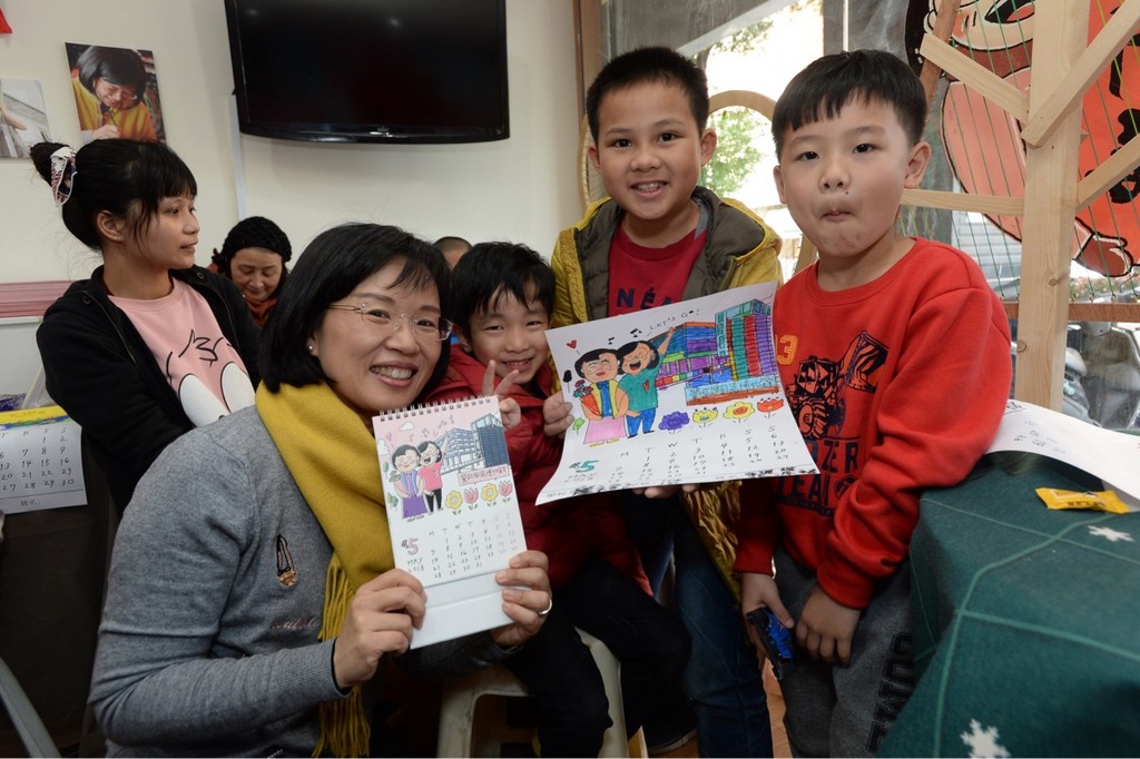 ▲蘇巧慧與孩童彩繪Q版月曆 。(圖/蘇巧慧辦公室提供,下同)
