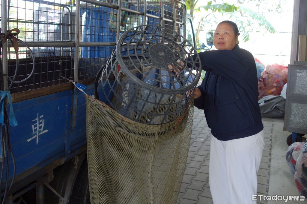 已分送2千只回收袋的蘇金環說,目前彰化、嘉義、台南、高雄一些環保站,都使用她製作的回收袋,但整匹布網重量不輕,舊傷加上裁剪需跪蹲在地,導致脊椎、手、膝蓋受損,3年內脊椎手術2次,目前僅能利用空閒時間製作,1小時車縫5個回收袋。