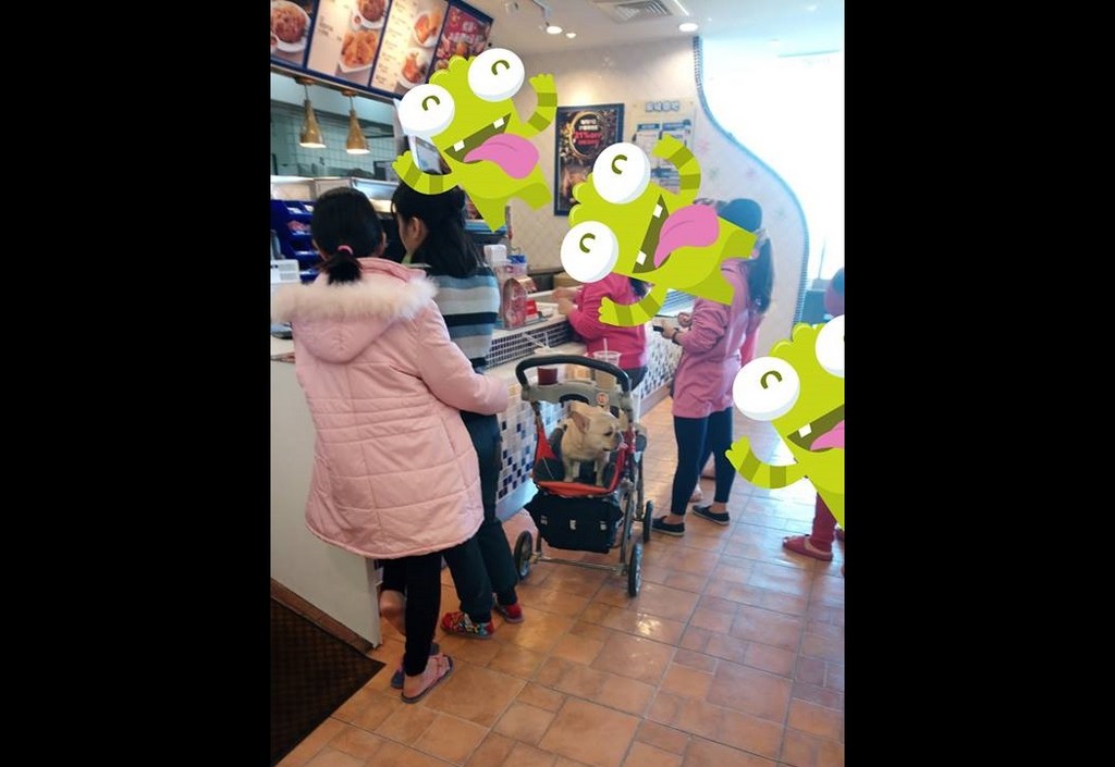 女網友表示,「這是賣場的公用推車 ,親眼看到還是很震驚」;照片中可見,一對母女推著嬰兒推車在買東西,但上面坐著的不是嬰兒,而是一隻法國鬥牛犬站在座椅上面,由於推車上有編號,讓她看傻眼,趕緊向工作人員反應,他們也說會去了解狀況。