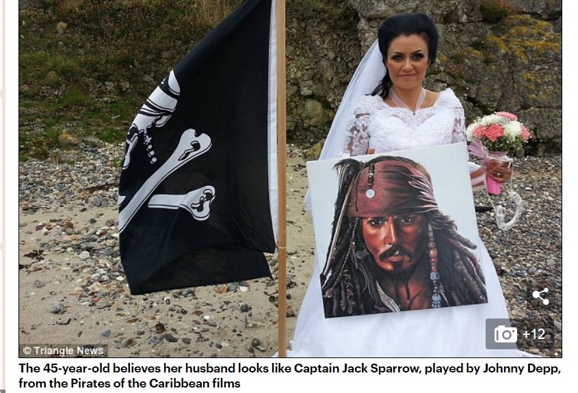 一名來自北愛爾蘭的45歲女子,覺得要找到一個對的人託付終生太累了,最後嫁給了一名海盜,不過這個「丈夫」早在300年前就過世,她卻說能感受到鬼魂,還說彼此「心有靈犀」,兩人終於在船上結婚,就連發生性關係也沒有問題,因為她認為「可以感受到丈夫」。