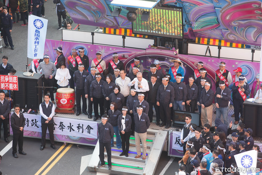 ▲國民黨立委反對農田水利會官派,聲援農民上立院場外抗議。(圖/記者季相儒攝)