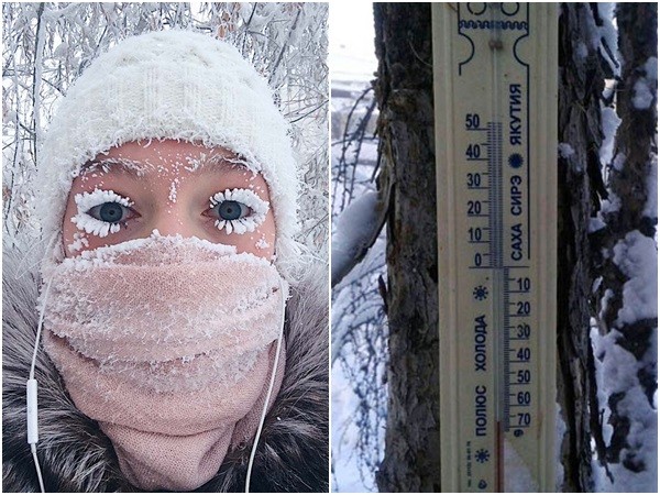 當地居民說,村子裡先前裝了一具新的電子式溫度計,不過因為天氣實在太冷,電子溫度計已經宣告失靈,螢幕上顯示零下62度,但實際氣溫還要更低。奧伊米亞康位於俄羅斯東北部的薩哈共和國(Sasha Republic),當地曾在1933年時測得零下67.7度的極端低溫,同時也是北半球出現過的最低溫紀錄。