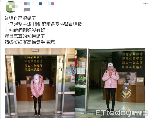女子見風向一轉,自知理虧,今早親自跑到派出所向所長及該名林姓員警道歉,表示「我自己真的知道錯了,請各位細友(應為網友)高抬貴手」,也獲得大多數網友體諒支持「知恥近乎勇」、「人非聖賢,孰能無過」、「網路真的Po文要三思」、「勇於承擔錯誤,很好!」
