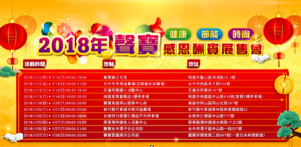 2018聲寶感恩酬賓展售會從1/11(四)到1/28(日)開跑!會場中將展售年度全新商品,包含聲寶極致4K HDR LED,只要一台就能滿足消費者影音娛樂各種體驗;聲寶大藏鮮冰箱全新系列超越2018新能效標準,食材保鮮讓您在家就像擁有新鮮農場;聲寶淨省王洗衣機全新系列,首創15分鐘快速槽洗淨、PICO PURE專利水離子除菌,看得見看不見的髒污通通徹底洗乾淨。